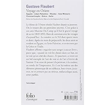 Je savais que le voyage en Orient était à la mode au XIXe siècle et que beaucoup d'écrivains l'ont fait, je découvre aujourd'hui celui de Flaubert qui me donne l'envie de lire ensuite les relations qu'en ont faites d'autres auteurs afin de comparer leurs impressions. Je suis surprise et admirative devant le courage qu'il a fallu à Flaubert et son ami Du Camp, les conditions dans lesquelles ils ont voyagé étaient souvent éprouvantes. Les descriptions faites par Flaubert des monuments et vestiges ne sont pas toujours très faciles à suivre mais toujours intéressantes. Ce qui me plaît moins ce sont les rapports avec les "autochtones" qui ne sont pas toujours très valorisants, et surtout avec les prostituées, l'auteur est dans le réalisme le plus cru. Le voyage dans ce qui est actuellement le Liban, la Syrie, la Jordanie et Israel est vraiment d'un autre monde quand on pense à ce qui se passe dans ces pays actuellement.J'apprécie particulièrement les réactions de Flaubert devant le Saint-Sépulcre et le Calvaire...Je cite:"Le pacha a les clefs du Saint-Sépulcre;sans cela les sectes s'y massacreraient..."Enfin je recommande ce livre qui est passionnant.